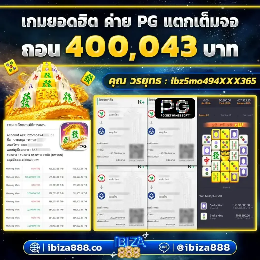 เว็บ ibiza888 จ่ายจริง มีรีวิวและหลักฐานการโอน จากลูกค้าตัวจริง จ่ายทุกบิล บิลล้านก็จ่าย